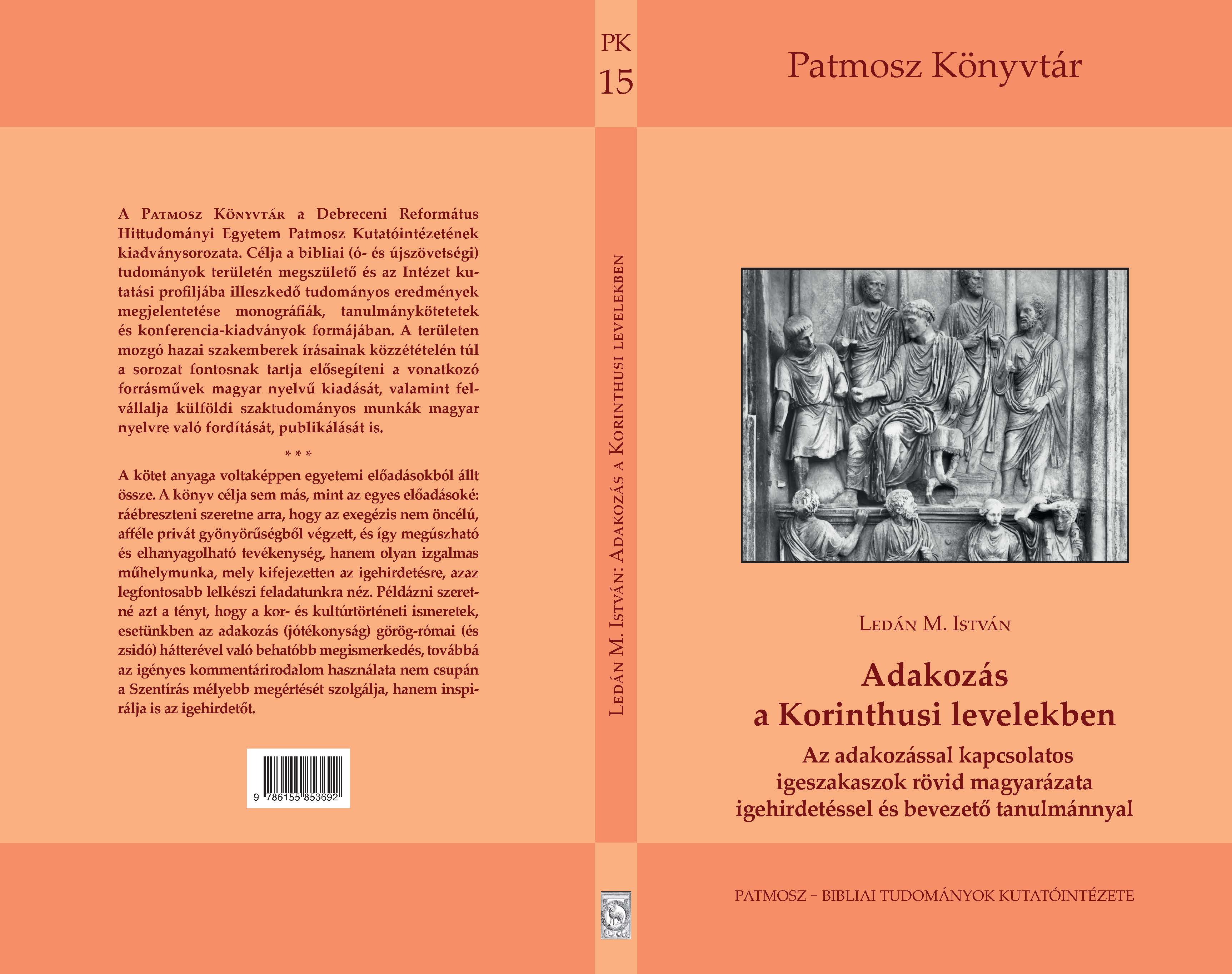 Ledán M., István (2024) Adakozás a Korinthusi levelekben. Az adakozással kapcsolatos igeszakaszok rövid magyarázata igehirdetéssel és bevezető tanulmánnyal. Parmosz Könyvtár ISSN 2063-5052 (15). DRHE Patmosz - Bibliai Tudományok Kutatóintézete, Debrecen. ISBN 978-615-5853-69-2
