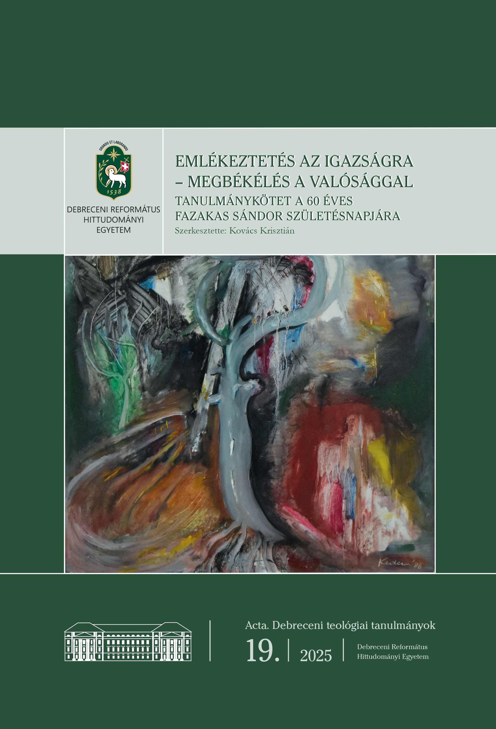 Kovács, Krisztián, ed. (2025) Emlékeztetés az igazságra – megbékélés a valósággal. Tanulmánykötet a 60 éves Fazakas Sándor születésnapjára. Acta. Debreceni teológiai tanulmányok ISSN: 2416-3570 (19.). Debreceni Református Hittudományi Egyetem, Debrecen. ISBN 978-615-5853-86-9